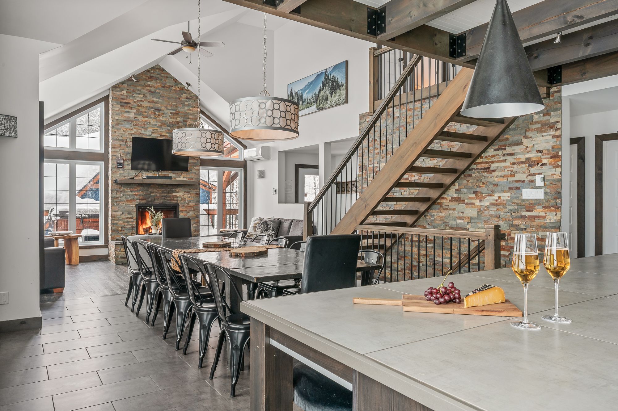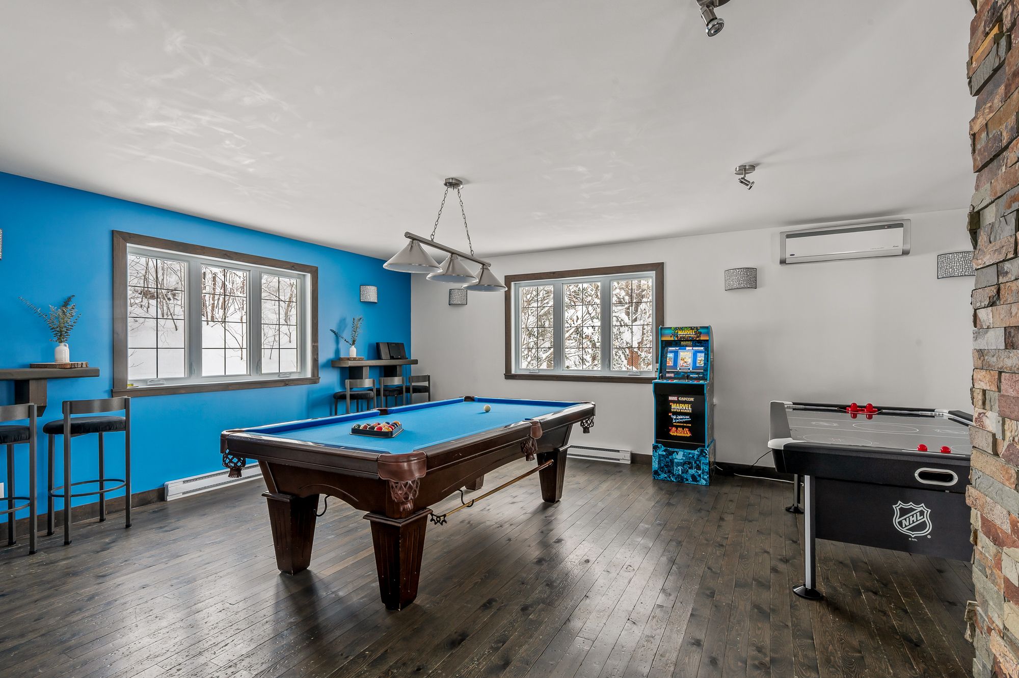 Afin de passer des moments inoubliables en famille ou entre amis, vous y trouverez toutes les commodités recherchées soit un spa privé, un BBQ, une terrasse couverte, des tables de billard, d’air-hockey et de Babyfoot, ainsi que des foyers intérieurs et extérieurs.